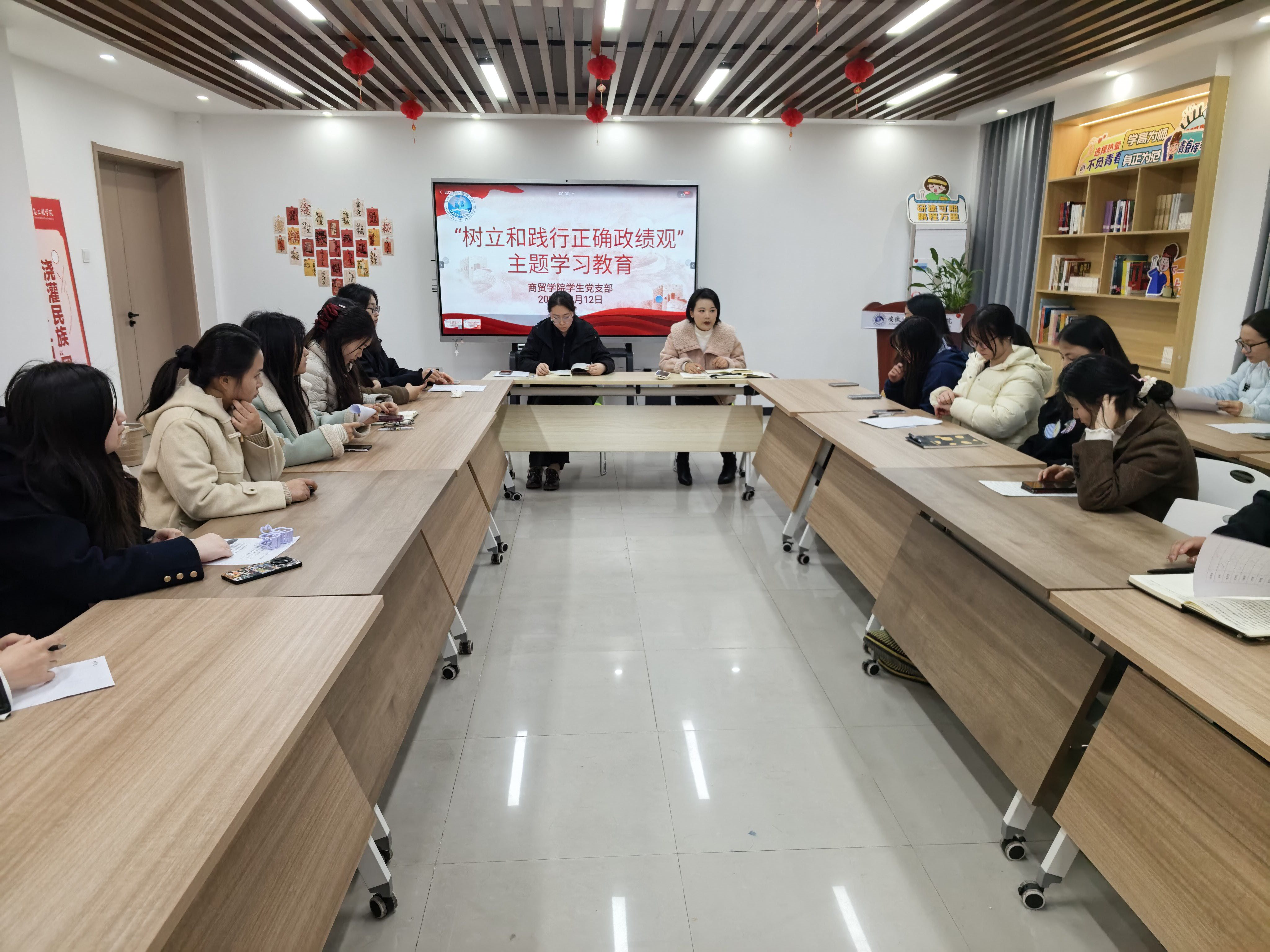 3月12日下午,商贸学院学生党支部在15、16栋“一站式”学生社区召开专题学习会,围绕“树立正确政绩观,勇担青春新使命”主题,组织全体学生党员深入学习《习近平关于树立和践行正确政绩观论述摘编》。会议由支部书记陈薇主持并领学。