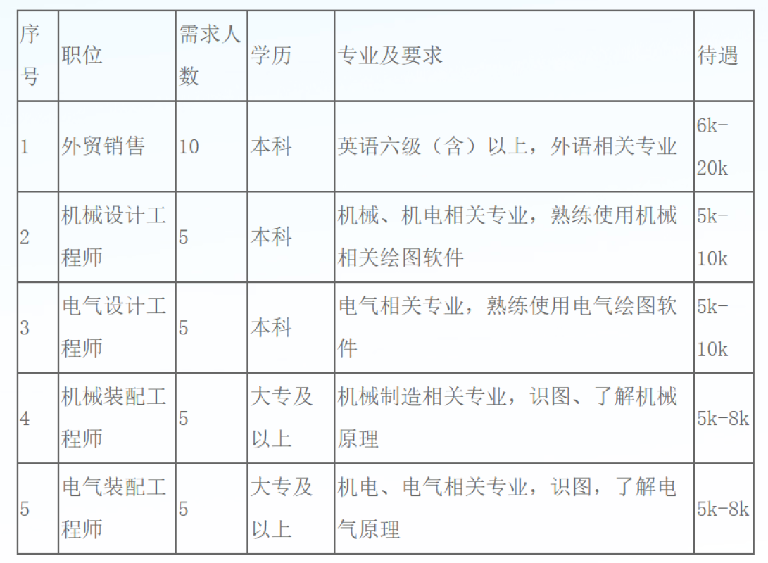 招聘需求: