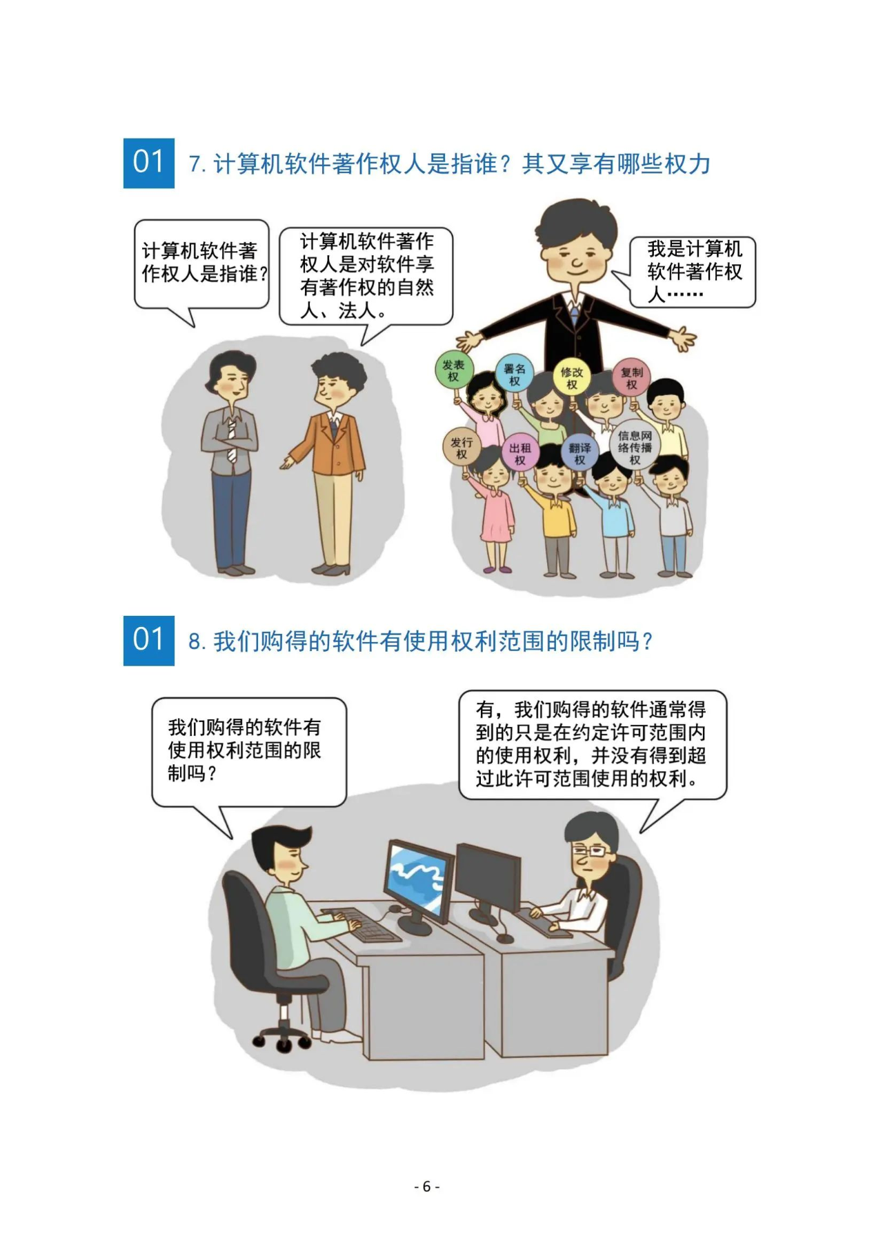 软件正版化,是使用开源免费系统和开源免费软件来代替盗版软件;或者是指软件终端用户购买正版软件,代替原来安装的非法产品。软件正版化工作是知识产权保护工作中的一项重要内容,具有特殊的地位和重要性。持续推进软件正版化工作,筑牢网络安全防线,是立足新发展阶段、完整准确全面贯彻新发展理念、服务和融入新发展格局、推动高质量发展的必然选择。那么,怎么保护著作权?什么是计算机软件版权?这份漫画版《软件正版化宣传手册》,快来学习一下。
