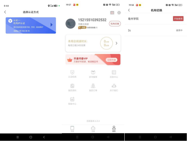4)认证一机构IP认证----机构切换----本校名称-开始使用