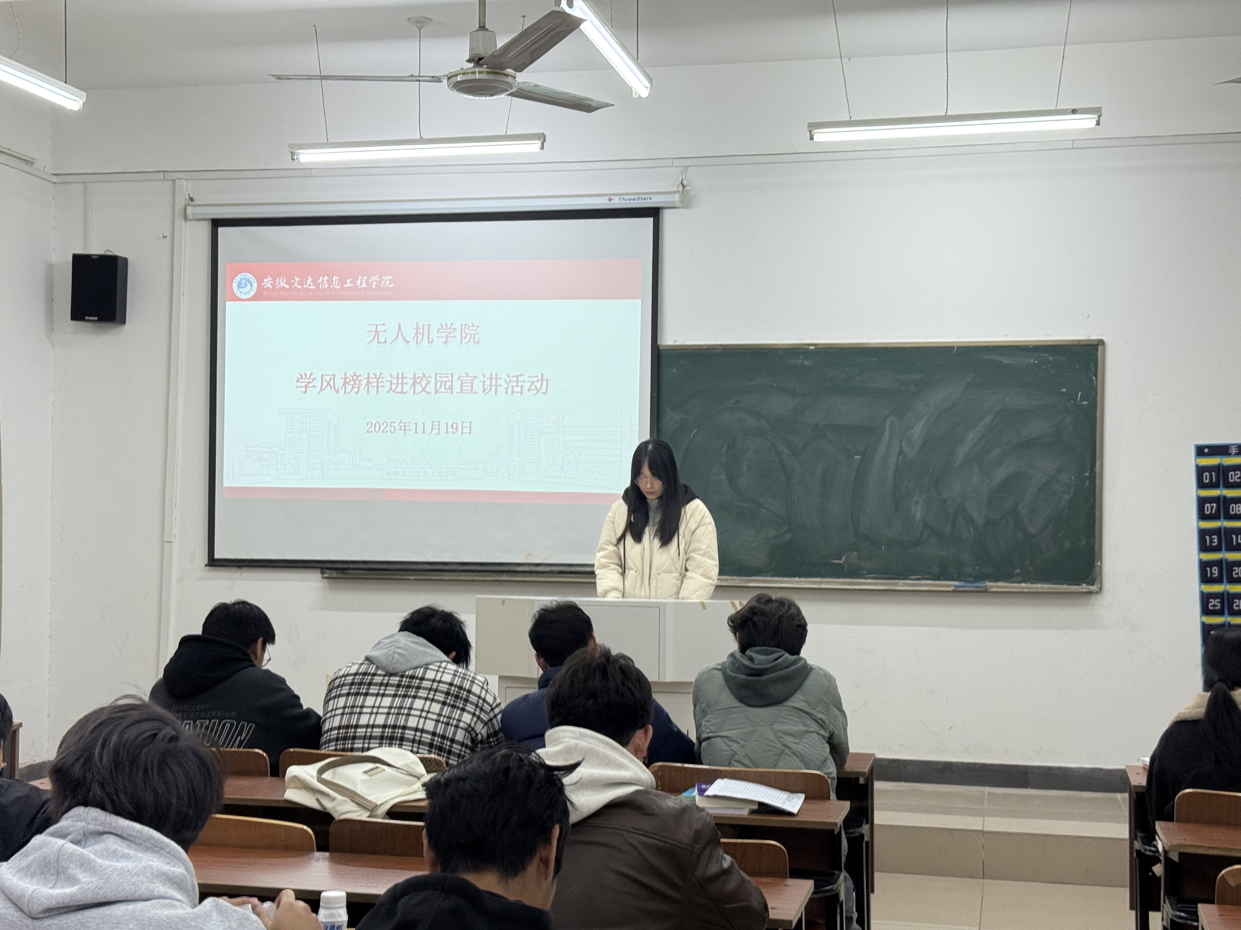 为充分发挥优秀学生的示范引领作用,营造勤学善思、笃行实干的优良学风,助力学校审核评估工作走深走实,11月19日晚6点30分,无人机学院“学风榜样进校园”宣讲活动在25级各班级晚自习教室顺利举行。校奖学金获得者代表受邀分享学习经验,与同学们面对面交流成长心得。