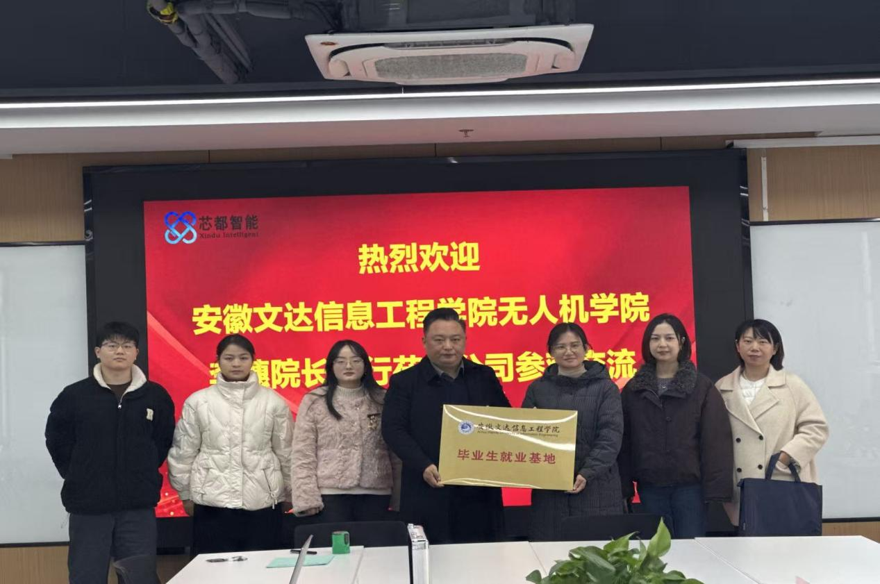 为深化产教融合、校企合作,构建人才共育、就业共促的协同发展新格局,12月26日,无人机学院院长李穗,副院长李梦和毕业班辅导员代表一行前往安徽芯都智能科技有限公司,新思考电机(合肥)有限公司参观考察并开展就业基地授牌暨共建交流会。