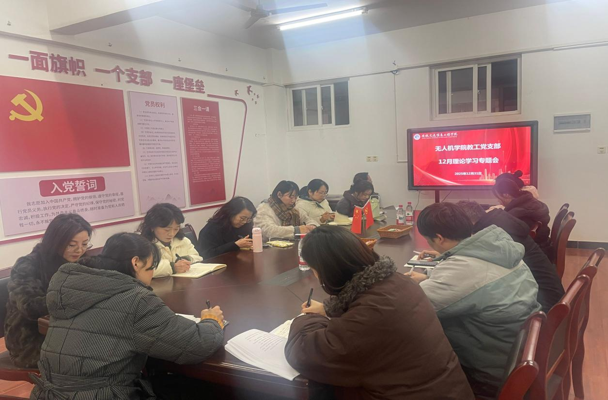 12月31日下午,无人机学院在毕昇楼209开展12月份教职工理论集中学习会。会议由学院党总支副书记李梦主持,教工党支部书记谷稳带领全体党员参与学习。