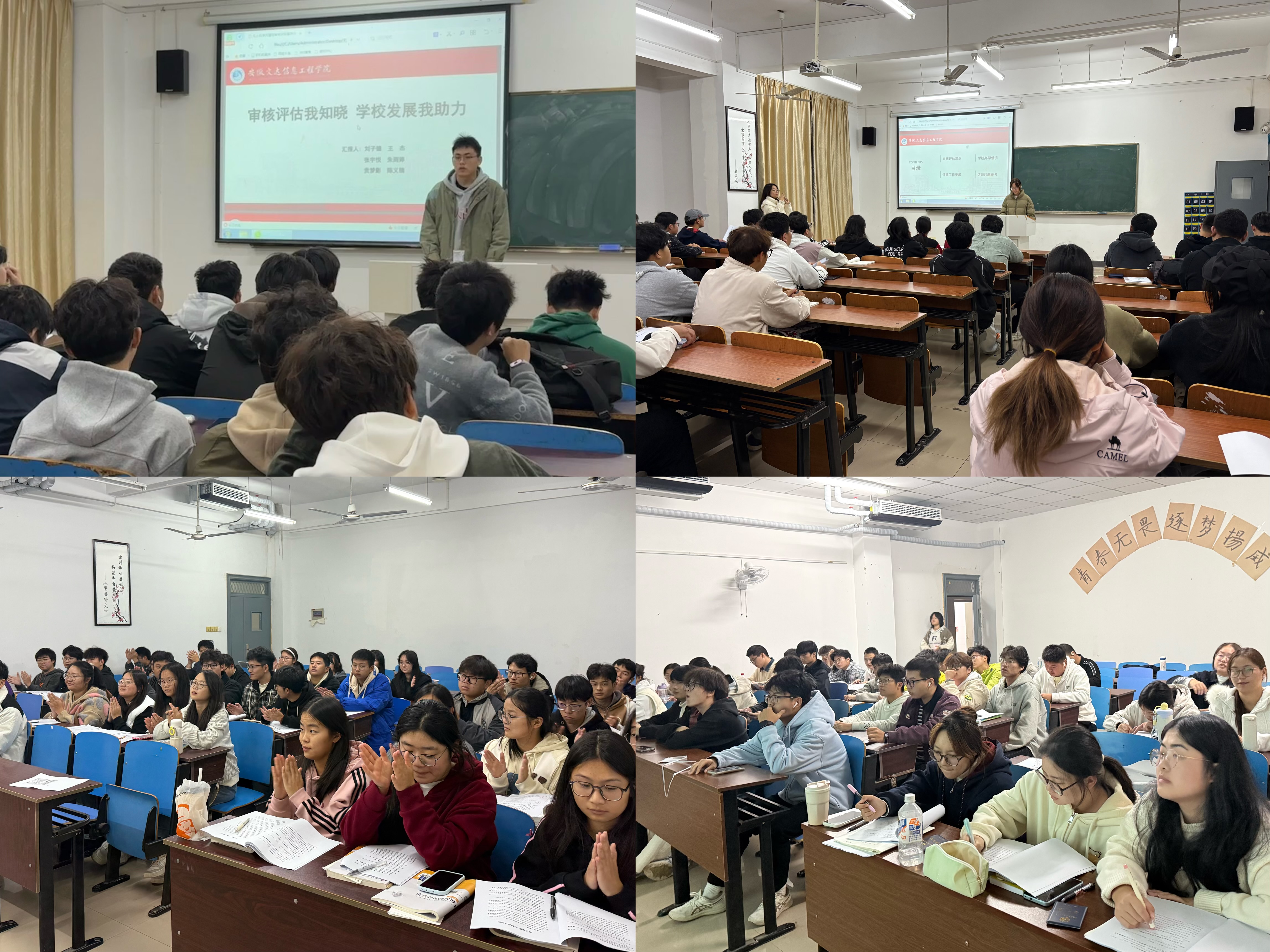 此次宣讲让新生清晰了解评估知识、消除困惑,更激发其参与学校建设的积极性。新生表示将以实际行动配合评估,提升自身素质。学院后续将持续开展多样评估宣传活动,强化学生认知,营造 “人人知晓评估、人人关心评估、人人参与评估” 的氛围,以优异成绩迎评,推动学校发展再上新台阶。(文图/方筱筱 审核/王玺)