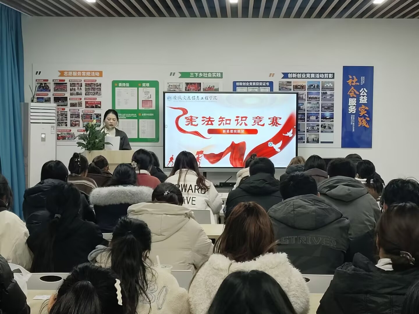 为引领学子更好地漫步于宪法知识的浩瀚星河,检验他们近期的学习收获,精准探寻知识盲区以提升法治思维,新思想实践团于12月4日晚在13、14栋“一站式”学生社区会议室举办了宪法知识竞赛活动。