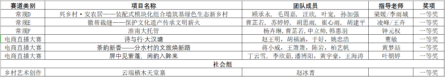 近日,由安徽省农业农村厅、中共安徽省委宣传部、省教育厅、省住房和城乡建设厅、省人力资源和社会保障厅、省商务厅、省文化和旅游厅联合主办的第四届安徽省乡村振兴创新创业大赛成绩正式公布,我校学子斩获一等奖7项、二等奖17项、三等奖21项、优秀奖22项,累计获奖作品67件,以优异成绩彰显文达青年投身乡村振兴的责任与担当,谱写学校创新创业教育高质量发展新篇章。