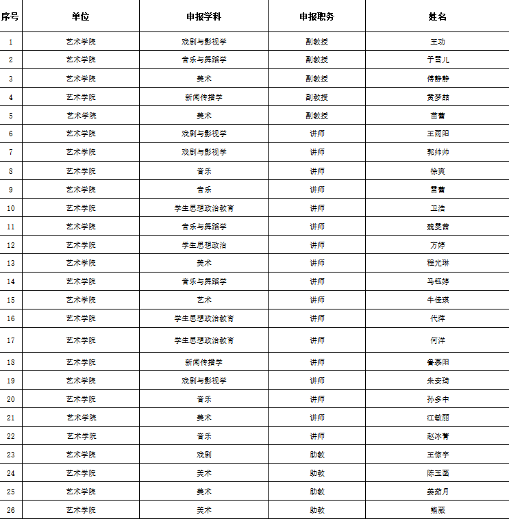 根据学校职称评审文件精神,2024年我院教师职评审工作,经宣传指导、个人申报、材料核实、资格审查、审核、评议、推荐等规定程序,拟同意王雨阳等53名人员申报相应职称,现将拟认定符合条件人员名单公示如下:
