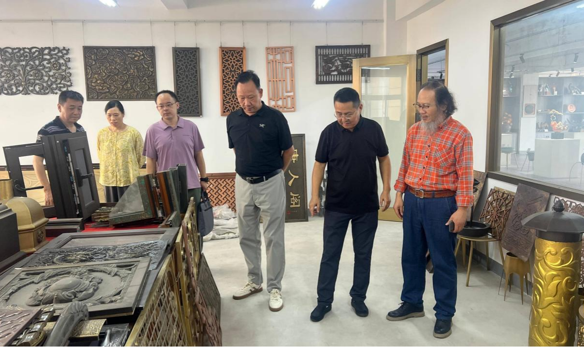 考察过程中,在企业负责人与文创设计团队的共同引导下,胡善风一行重点参观了天宝物华公司的铜艺文创产品研发中心与展示区。现场陈列的铜艺书签、非遗主题摆件、城市IP文创衍生品等系列产品,将传统铜艺工艺与现代设计理念深度融合,其独特的文化内涵与市场潜力引发考察团高度关注。企业负责人介绍,作为中国铜艺装饰行业的优秀企业,公司近年来积极拓展文创领域,致力于将铜艺这一传统工艺转化为符合当代审美与消费需求的文创产品,但目前在文创产品的创意设计、文化元素提炼及市场定位方面仍需专业力量支持。