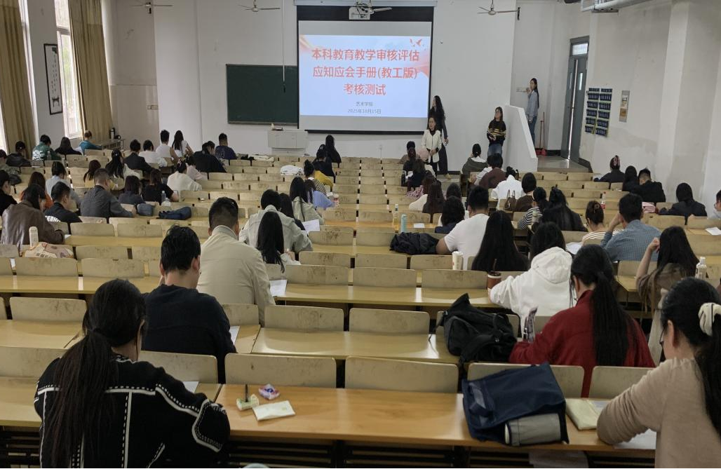 为深入贯彻学校本科教育教学审核评估工作要求,精准检验教职工对审核评估基本知识、指标内涵及学校评建情况的掌握程度,10月15日12:30—14:00,我院在庄子阶梯一教室,开展了一场教学审核评估应知应会(教工版)考核测试,院领导班子监考,全体专任教师参加。