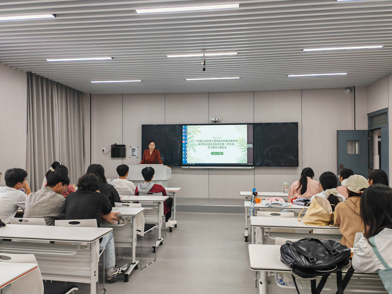学院以各班级为单位,组织召开了“审核评估应知应会”专题学习班会。班会上,辅导员和班委骨干带领同学们系统学习了《本科教育教学审核评估应知应会学生手册》的核心内容,通过深入浅出的讲解和面对面的交流,同学们深刻认识到审核评估是对学院人才培养质量的一次全面检验,事关每位学生的成长与发展前景。