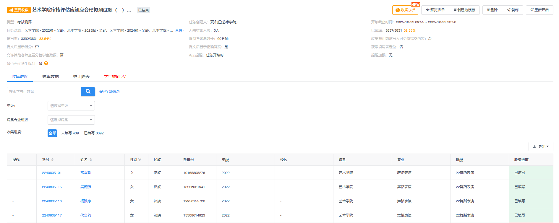 为进一步落实学校本科教育教学审核评估工作要求,全面提升我院学生对评估知识的掌握程度与认同感,营造“人人关心评估、人人了解评估、人人参与评估、人人支持评估”的浓厚氛围,近日,艺术学院精心策划并组织开展了为期数周的“审核评估应知应会”学生手册学习系列活动。本次活动形式多样、覆盖面广、实效性强,旨在引导全院学生深刻理解评估内涵,自觉规范言行举止,以最佳精神风貌迎接审核评估。