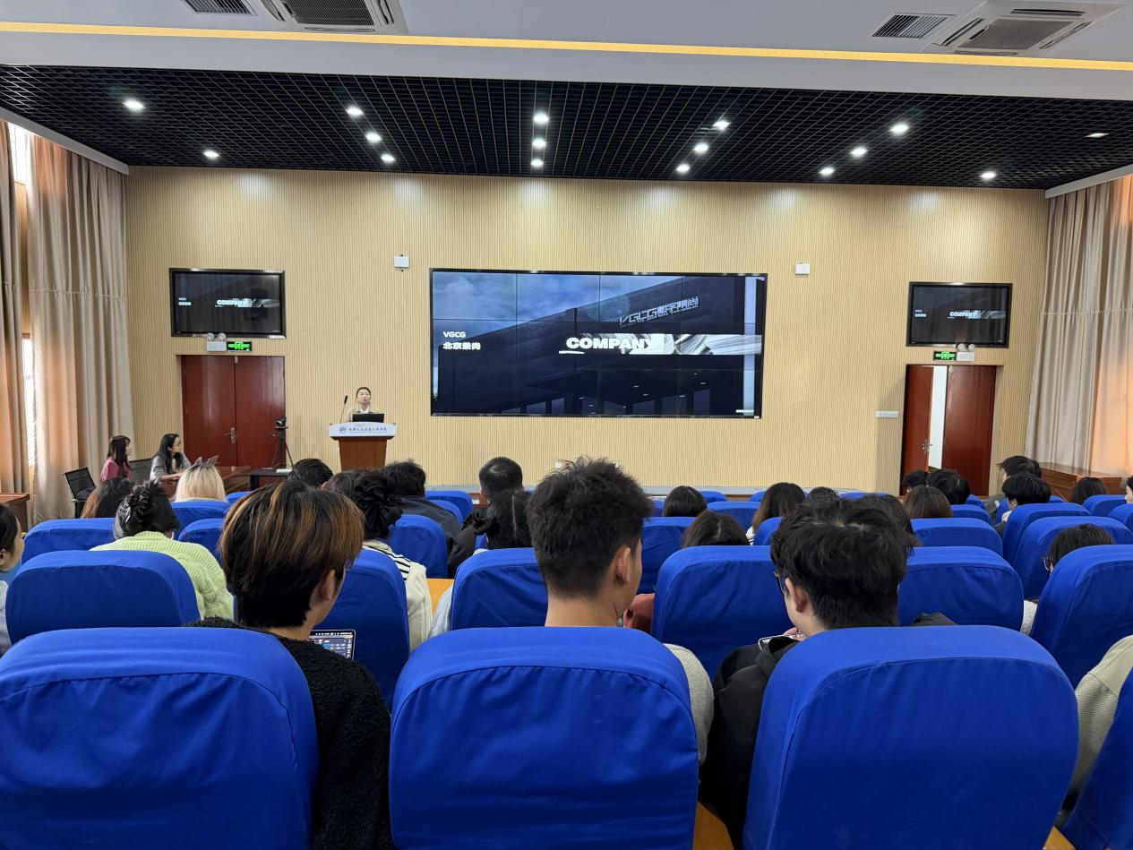 为让学生更直观地了解技术应用场景与行业实践需求,北京景尚众合数字传媒科技有限公司代表沈里玲带来了精彩的行业分享。她结合企业实际项目案例,重点讲解了如何打造企业数字化展厅的 AI 超媒体展示系统,从技术实现路径、创意设计思路到市场应用效果进行了全方位解析,让在场学生对 AI 超媒体技术的实际应用价值有了更深刻的认识,进一步激发了大家的学习兴趣。