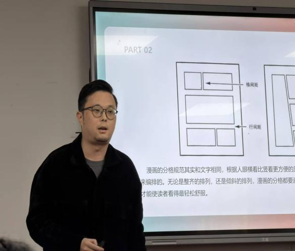 在观摩课上,动画教研室彭澎老师以《故事漫画的构成要素》为题,通过漫画的叙事系统与马克思辩证唯物主义系统观的融合等经典案例,引导学生感悟中华美学的精神内核,并自然融入马克思主义思想等思政元素;新媒体教研室吕锡伟老师则以《设计概论》中中国现代设计的思维为切入点,分析故宫博物院文创等作品,用设计语言讲述时代故事,激发学生的爱国情怀与社会责任感。两位教师巧妙运用案例教学、情境创设等方法,将思政教育润物无声地融入专业教学中,获得在场教师一致好评。