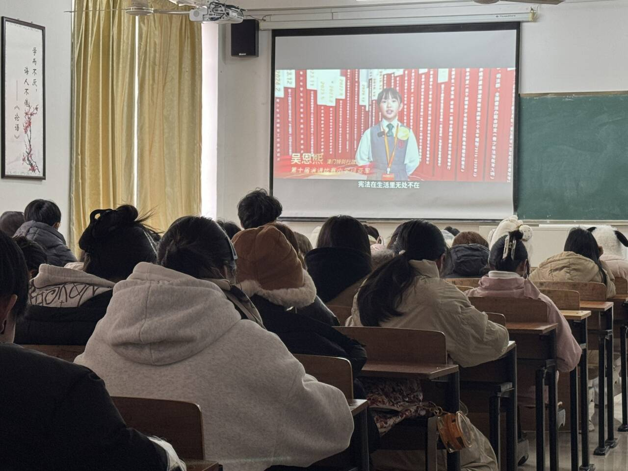 为深入学习宣传宪法知识,弘扬宪法精神,增强我院青年学子的法治观念,积极响应国家宪法宣传周号召,同时结合学院学风建设与思想政治教育实际,12月4日,我院组织开展观看“宪法晨读”直播活动。学院两百余名学生骨干参加了此次活动。