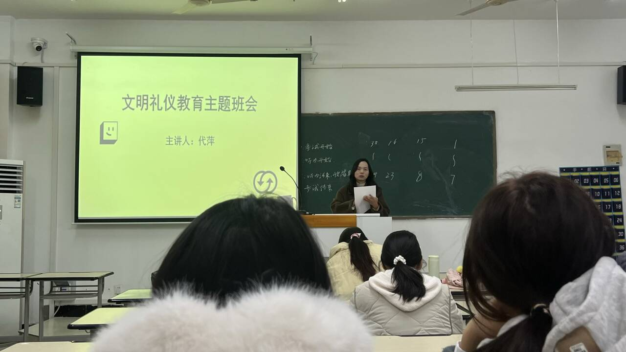 为了让文明礼仪教育更加深入人心,学院组织辅导员以班级为单位开展了文明礼仪主题班会。在班会上,组织学生围绕“文明礼仪在身边”这一主题,展开了热烈的讨论和交流。同学们分享了自己在日常生活中遇到的文明和不文明行为,并就如何践行文明礼仪发表了自己的看法和体会。辅导员们通过课件讲解、动作示范、案例分析与现场互动,帮助学生快速深化对礼仪规范的认识,夯实文明认知基础,增强自觉遵守文明礼仪规范的意识。