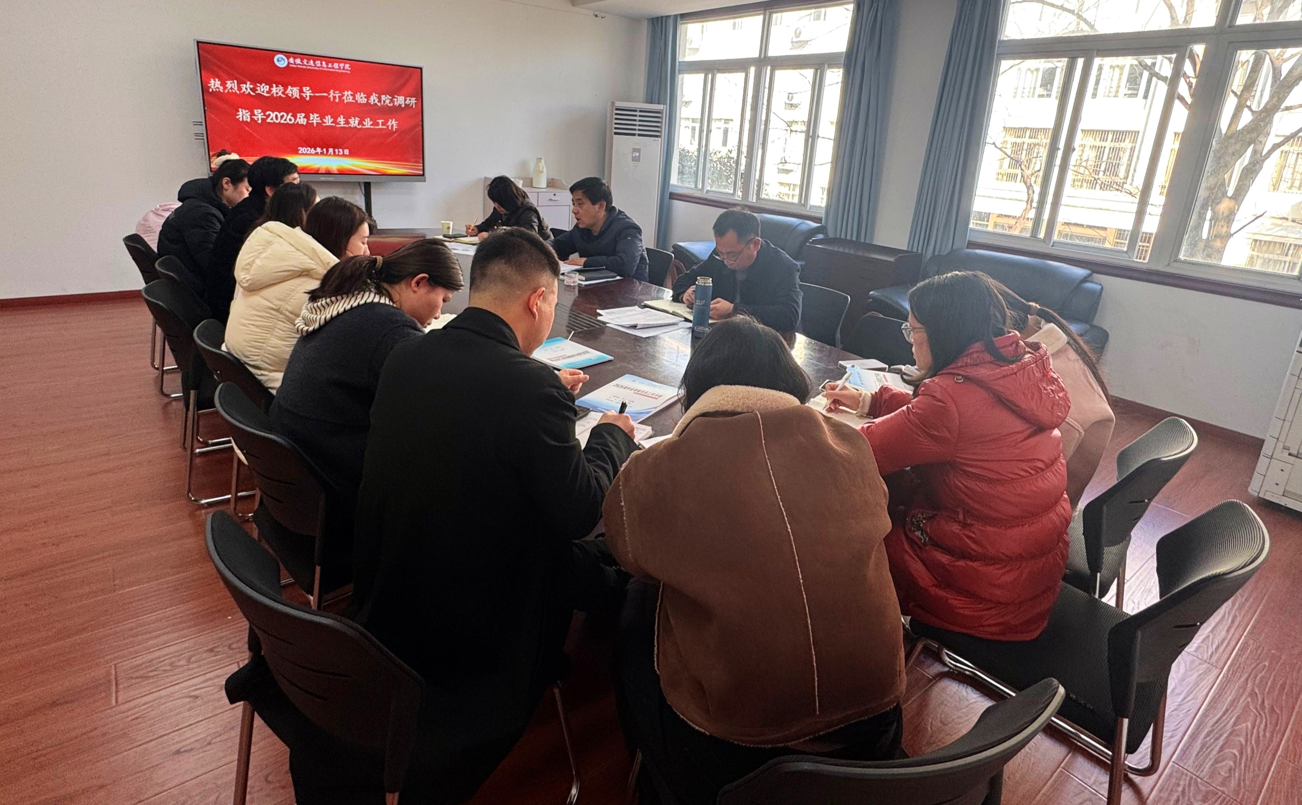 为持续推进2026届毕业生高质量就业,1月13日上午,副校长袁文龙,招生就业处处长刘宏一行走访我院。围绕2026届毕业生就业现状与帮扶措施等问题展开调研座谈。学院党总支书记杨静、副书记夏源江及毕业班辅导员参加此次座谈会。