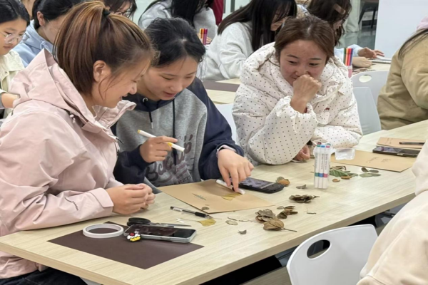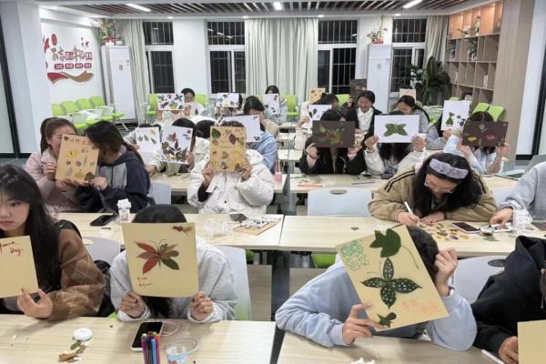 本次活动以落叶为创作素材,将自然之美与手工艺术相结合,旨在引导学生在忙碌的学习生活中停下脚步,感受季节变换带来的诗意与宁静。活动吸引了40多名学生踊跃参与,现场气氛温馨而热烈。