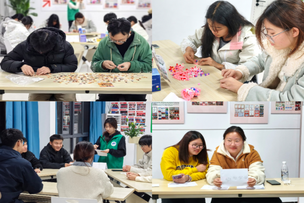 活动伊始,主持人简要介绍主题与流程,并借助破冰互动迅速拉近同学们的距离。在核心环节中,同学们根据个人兴趣选择相应活动内容,现场分组同步开展各类益智与互动项目。大家在各具特色的任务中协作交流,在思维碰撞中不断激发默契与共鸣。活动尾声特别设置了“兴趣盲盒”抽取环节,以趣味形式为同学们送上惊喜,现场气氛温馨热烈。