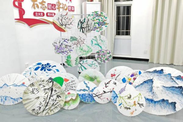 活动尾声,原本素净的油纸伞已然焕发鲜出活生命力,每一笔都藏着同学们的独特心意。完成创作的油纸伞集中陈列于特色展示架,一把把承载着创意与心意的油纸伞相映成趣,成为一道靓丽风景线。同学们纷纷与作品拍照合影,定格这份非遗创作的美好记忆。