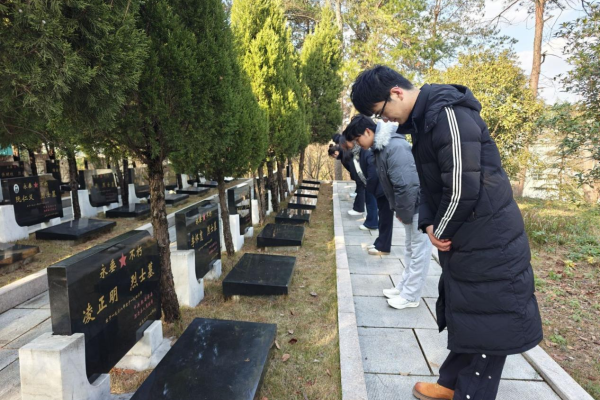 为铭记历史、缅怀革命先烈,厚植爱国情怀,2025年12月13日,我校“一站式”学生社区联合新思想实践团以沉浸式观影与实地祭扫相结合的方式缅怀先烈,让英烈精神在学子心中深深扎根。