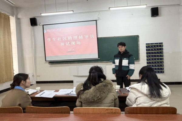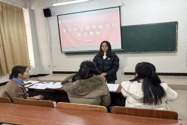 为深入推进“三全育人”综合改革,破解学生社区管理服务难题,着力构建年轻化、高效化的宿舍管理新体系,12月11日,学生社区宿舍管理中心在庄子103教室顺利组织学生社区“助理辅导员”第二批次面试工作。学生处处长黄腊梅、副处长李品及学生社区宿舍管理中心主任袁媛组成评委团,全程对选拔流程进行严格把控,以公平、公正、公开的原则筛选优秀人才,为打造一支高素质学生管理队伍筑牢根基。