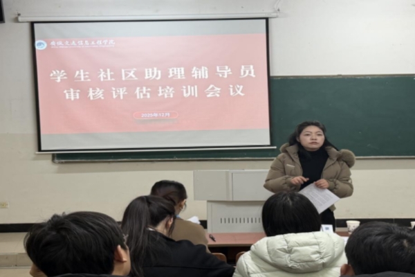 为扎实筑牢审核评估迎检防线,全面提升学生社区管理服务与育人实效,2025年12月12日下午,学生社区宿舍管理中心在庄子楼103教室专题召开助理辅导员审核评估培训会议。学生处处长黄腊梅主持会议并作工作部署,副处长李品、学生社区宿舍管理中心袁媛老师及全体助理辅导员参加会议,凝聚起迎评备战的共识与力量。