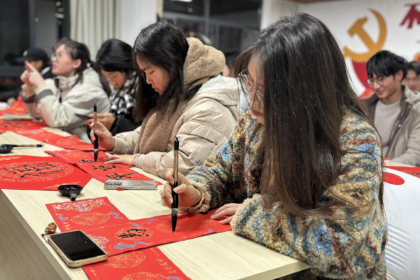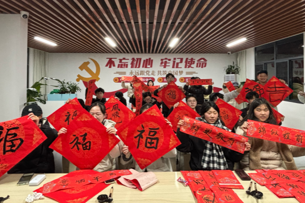 一幅幅笔力遒劲的春联逐渐成型,或寄托对新年的美好期盼,或承载对生活的真挚祝福。最后,活动特设“新春祝福墙”,同学们将完成的作品展示其上,相互欣赏、交流感悟,现场洋溢着浓厚的文化气息与欢乐氛围。