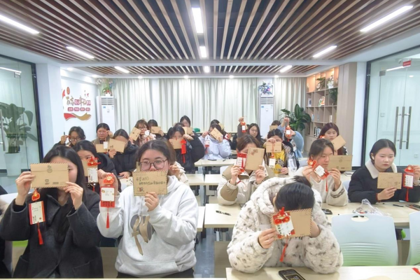 书写环节中,工作人员已提前将定制信纸与信封整齐摆放于桌面,同学们静心伏案,写下致2026年自己的专属信件;紧接着在卡片上提炼新年寄语,不少同学主动分享心声,真挚表达引发全场共鸣。最后,同学们将书信郑重封存,共同定下明年开启的约定,为这场温情满溢的时光之约画上圆满句点。