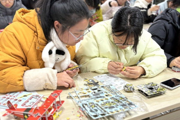活动伊始,工作人员深入浅出地讲解了立体模型的设计原理与拼装技巧。在实践环节,同学们分组进行各类模型的创作。大家仔细琢磨,默契协作,让零散的部件在手中逐渐焕发生机,演变为一件件结构严谨、形态各异的立体作品。从理解原理到亲手实现,这一过程不仅锻炼了空间思维与动手能力,更让同学们在团队合作与问题解决中收获了实践的乐趣与成就感。