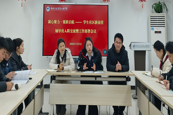 1月27日,我校“凝心聚力,履新启航”新任宿管辅导员入职交流暨工作部署会议在17、18栋一站式学生社区举行。学生处处长黄腊梅,副处长崔光竹、李品,学生社区宿舍管理中心主任袁媛出席会议,全体新任宿管辅导员参会。