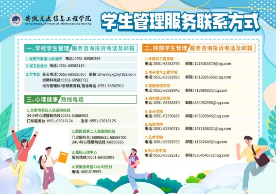 为进一步做好学生管理服务工作,维护学生合法权益,现将安徽文达信息工程学院学生管理服务咨询投诉电话和邮箱予以公布: