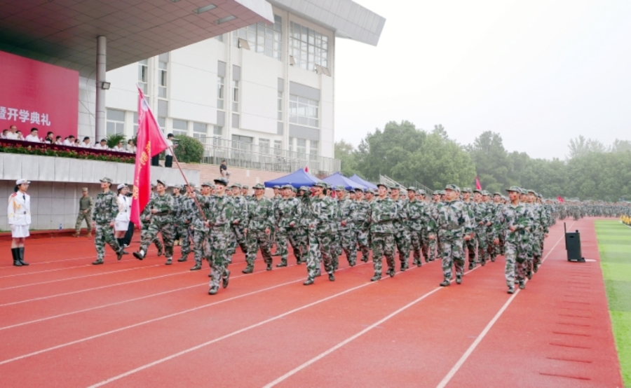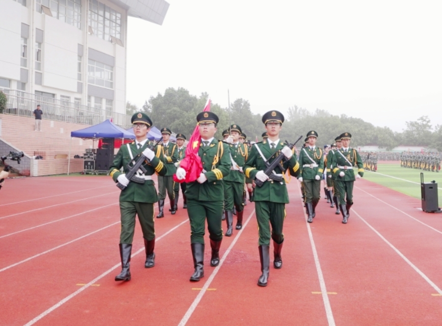 上午8时30分,伴随着庄严激昂的国歌,2025级新生军训成果展示暨开学典礼正式启幕,护旗手们昂首挺胸、神采奕奕,迎着晨光将五星红旗冉冉升起,场面庄重而肃穆。