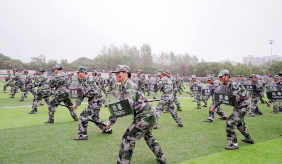 旗语、格斗术、匕首操、盾牌操、无人机战术行动表演等项目轮番登场,精彩的演绎让现场掌声此起彼伏,充分展现出当代青年大学生过硬的身体素质、扎实的军事素养以及充满活力的青春风采。