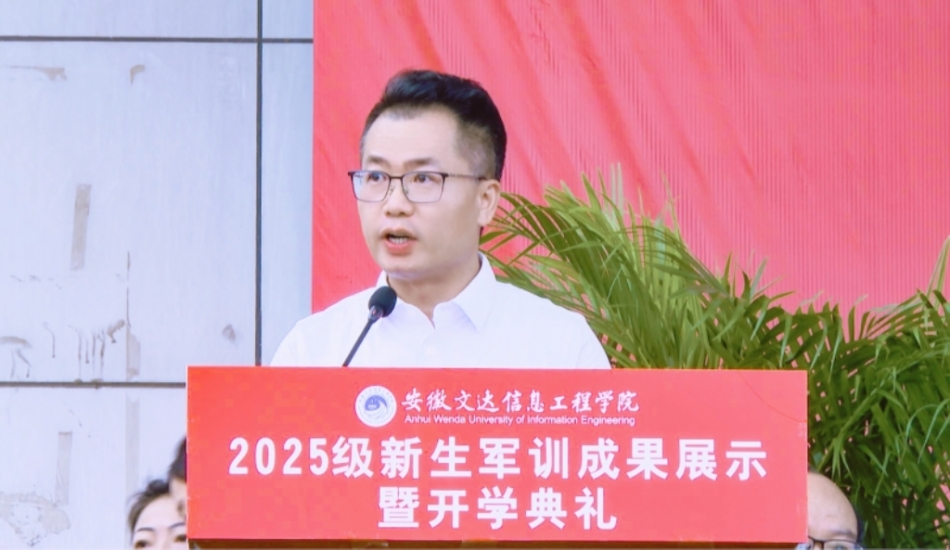 党委副书记、校长熊健作总结讲话。他代表全校师生员工,向2025级全体新同学表示最热烈的欢迎和最衷心的祝贺。他指出,学校二十五载栉风沐雨、薪火相传,始终牢记“为党育人、为国育才”的初心使命,秉承“明德至善、勤学躬行”的校训,全面落实立德树人根本任务,持续深化教育教学改革,不断改善办学条件,应用型人才培养质量稳步提升,成功获批为安徽省硕士学位授予立项建设单位,文达学院正在向建设高水平应用型本科大学稳步迈进。