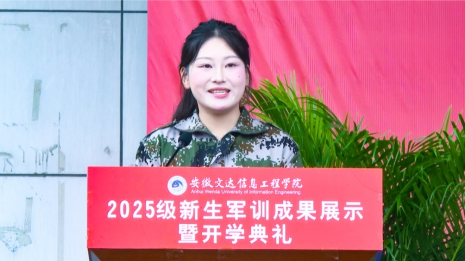 艺术学院2025级播音与主持艺术对口专业查盈盈作为新生代表发言。她呼吁全体新生谨记“明德至善,勤学躬行”的校训,在书海中探寻真理,于社团里绽放光彩,用实践打磨本领,靠友爱凝聚温暖,以奋斗姿态成长为高素质应用型人才,共赴四年青春征程。