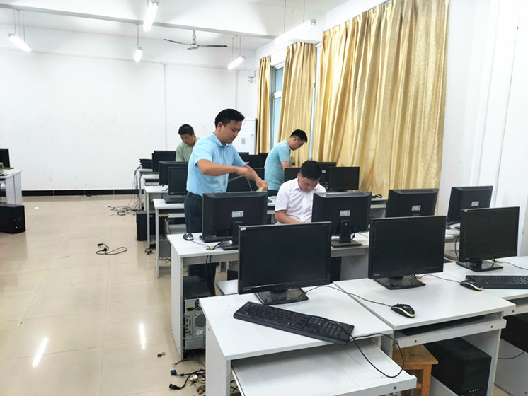 改造工作时间紧、任务重,实资处在校领导的高度重视下和后勤服务集团、教务处等部门的大力支持下,利用暑期“窗口期”,为师生办实事。正值连日闷热天气,实资处领导班子放弃休息、带头埋头干,拆卸机柜、电脑主机电源等,为暑期机房改造工作顺利开展作出了表率、奠定了基础。