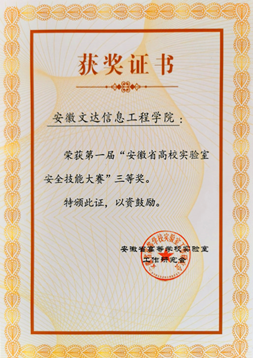 8月18日,首届“安徽省高校实验室安全技能大赛”在滁州学院举行。我校参赛团队获得三等奖。