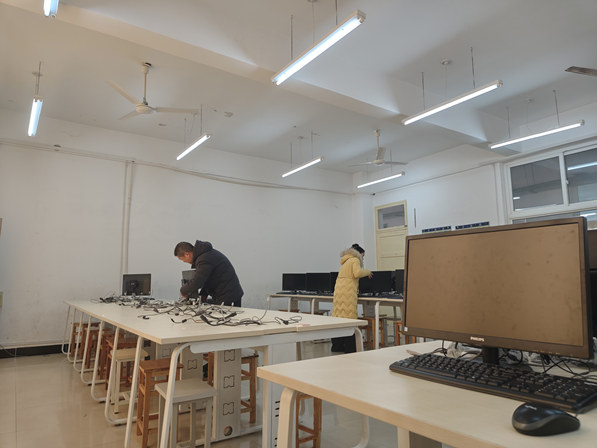 目前,8个机房顶棚和部分墙体墙皮重新粉刷工作正有序推进中,预计3天内可全面完工。完工后,中心将立即组织人员开展机房设备检查调试与环境卫生清理恢复工作,并结合新学期教学需求,提前完成各类教学软件的安装调试,为新学期教育教学工作平稳有序开展做好充分准备。